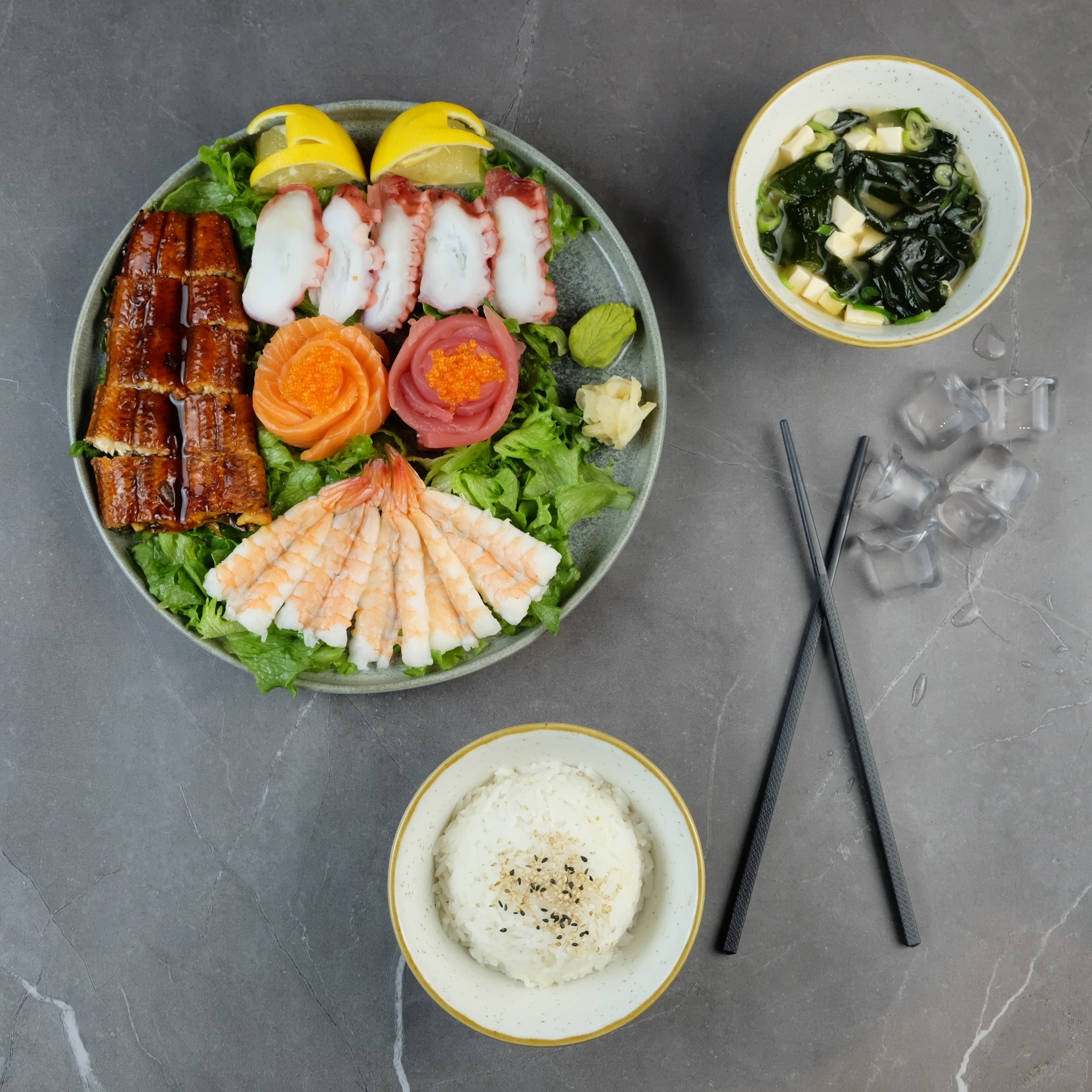 Sashimi Mix Med Miso Suppe Og Ris